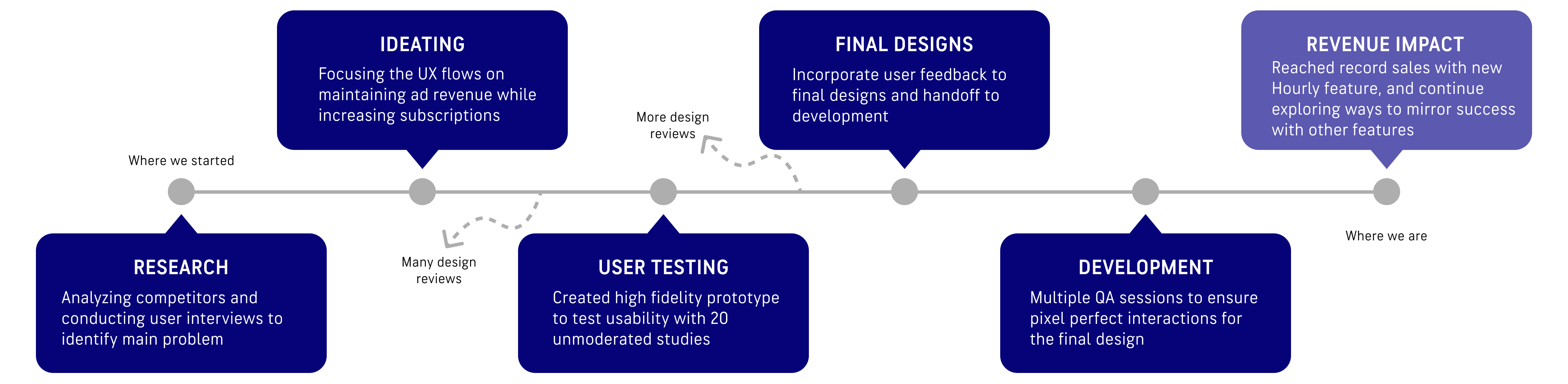 What I learned from this project is the power of contextual upsell placement and that quality > quantity of Premium ads. With already over 200,000 new paid subscribers with this one new feature that exceeded monthly revenue goals by 25%, I believe the numbers will only climb higher as more new users find the seamless upsell to upgrade their weather experience.